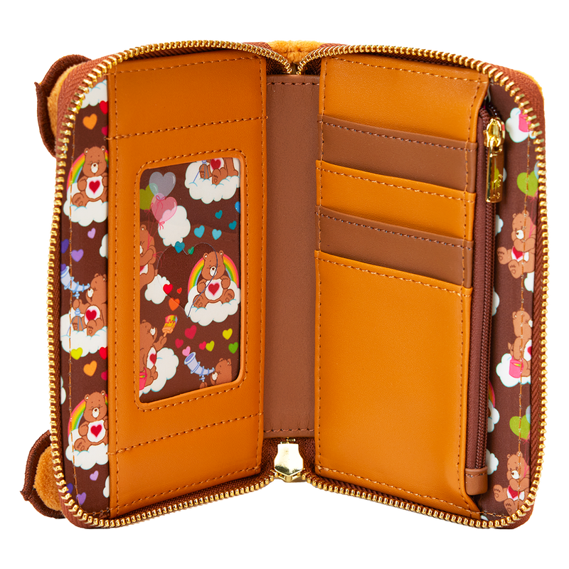 Share smiles to your heart’s content with our exclusive Tenderheart Bear™ plush zip-around wallet. The front features Tenderheart Bear’s adorable face, which comes to life in embroidered and applique details—and soft brown plush covers both sides of this accessory. Flip the wallet around, and you’ll find an embroidered heart in pink and red. Secure your valuables for a day of spreading kindness wherever you go.