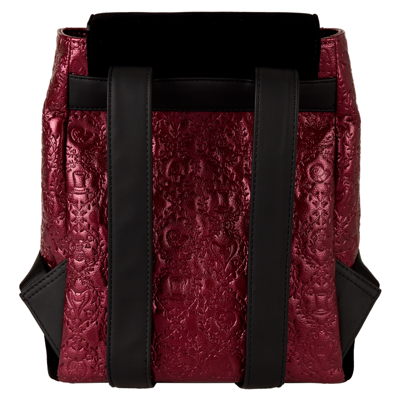 This mini backpack is the perfect accessory to add some edge to your look! Metallic faux leather, velvet, and studs make it stand out. All over, you’ll find debossed symbols of some of your favorite Disney Villains surrounded by spiky vines!