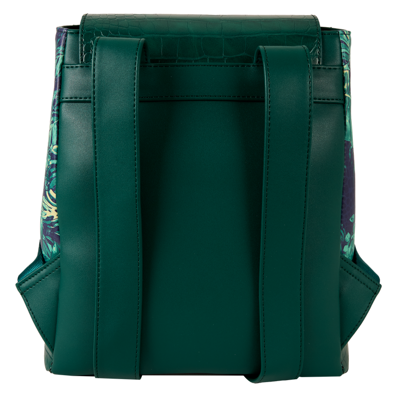 Foliage designs cover this bag and the top flap is in the shape of a leaf. When it’s secured in place, you can see the eye of a velociraptor peeking through. Lift the flap to reveal the entire dinosaur! Crocodile faux leather gives it an extra Jurassic-era feel.