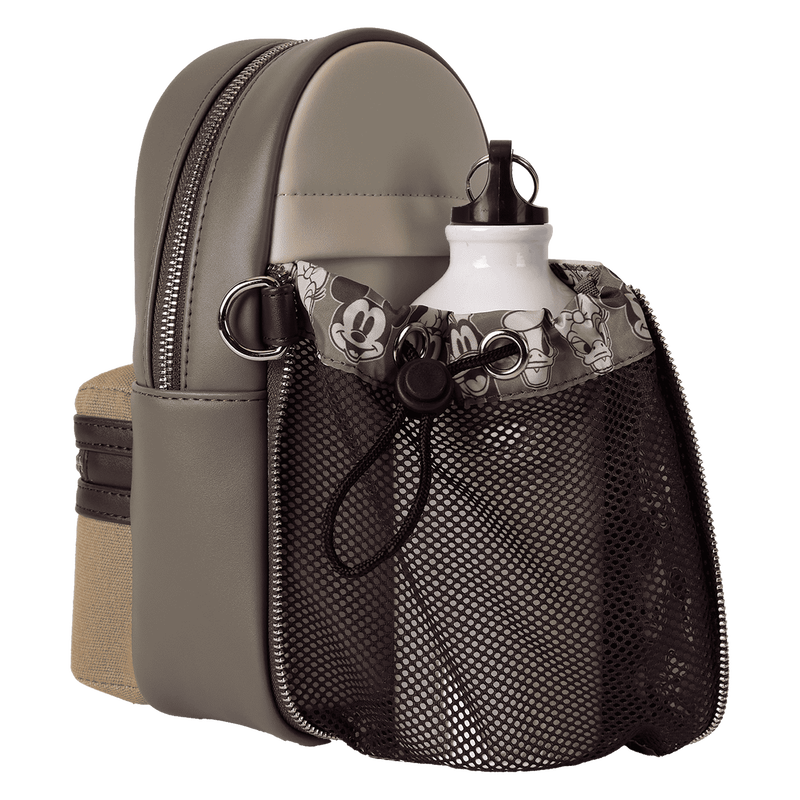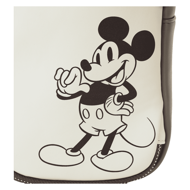 Take those best pal vibes with you wherever you go. This crossbody bag of Disney’s Mickey Mouse and Friends sure is swell! And it’s great for carrying a water bottle and other necessities. A detachable and adjustable strap offers hands-free convenience on the go. A pocket on the canvas-trim front features the face of Disney’s Mickey Mouse in shiny gold embroidered thread. Flip the bag around, and you’ll find a classic black-and-white print of Mickey. Store just what you need to take off on fun-filled adventures in style.
